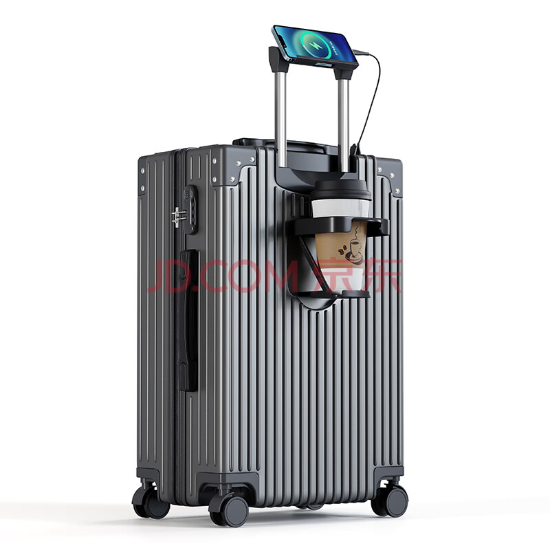 商品相册:梵地亚28英寸行李箱多功能箱包拉杆箱学生大容量旅行密码箱皮箱杯架灰色第