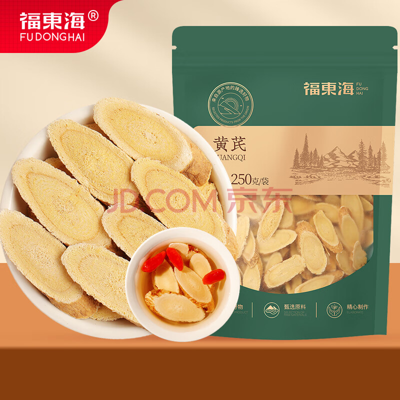商品相册:福东海 约5年黄芪片250克 约10-12mm甘肃野挖生北芪泡水煲汤滋补养生第