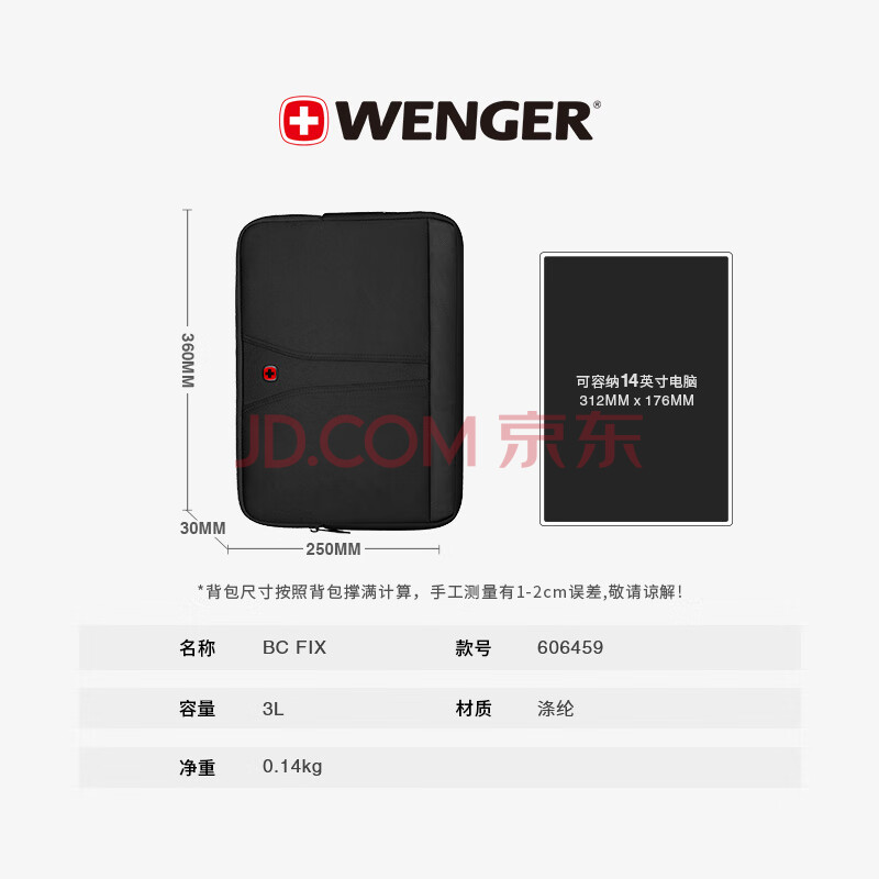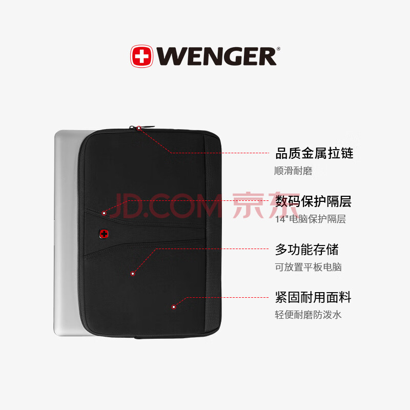 商品相册:威戈瑞士军刀14英寸商务笔记本电脑包防泼水手提包黑色出差第