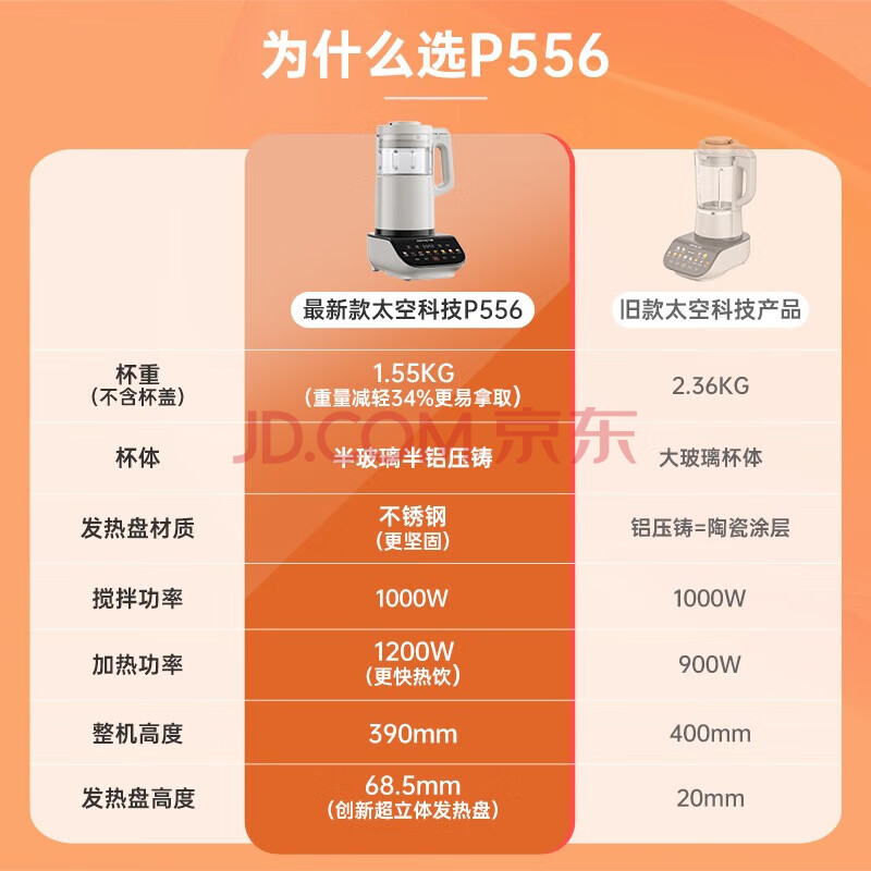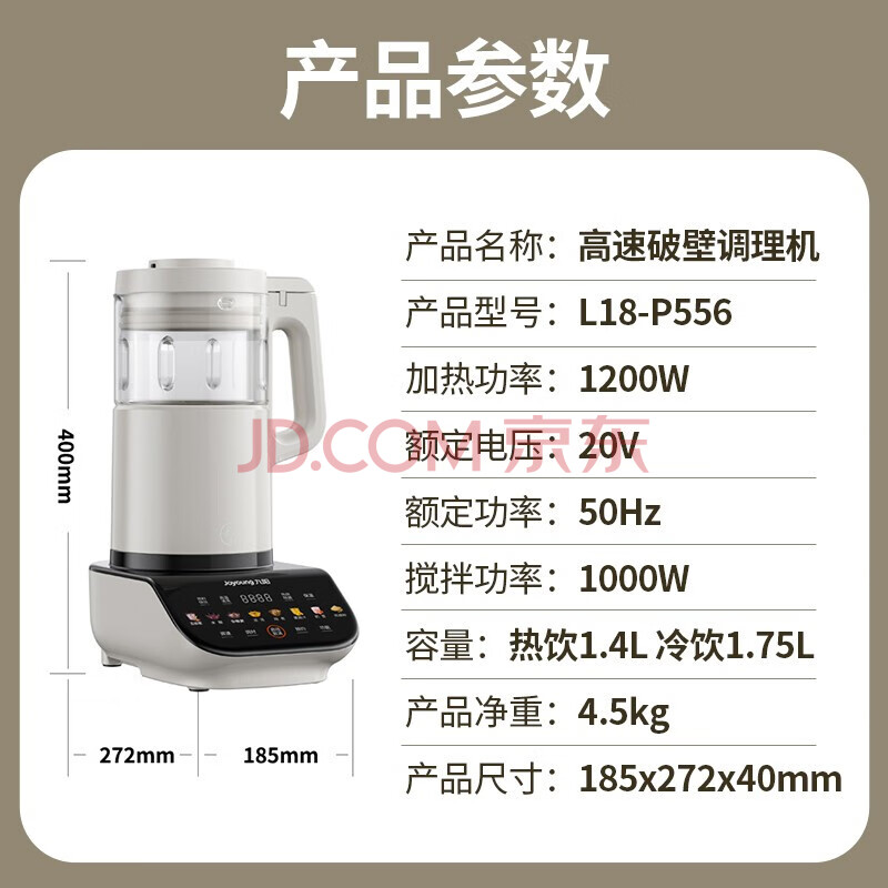 商品相册:九阳(Joyoung) 破壁机 家用豆浆机免滤1.75L大容量多功能智能预约新一代太空科技轻量化杯体 L18-P556第