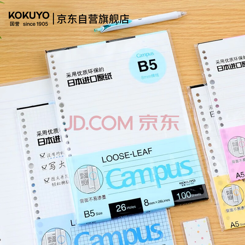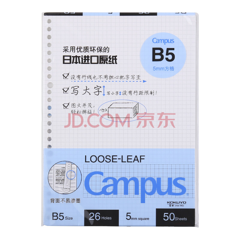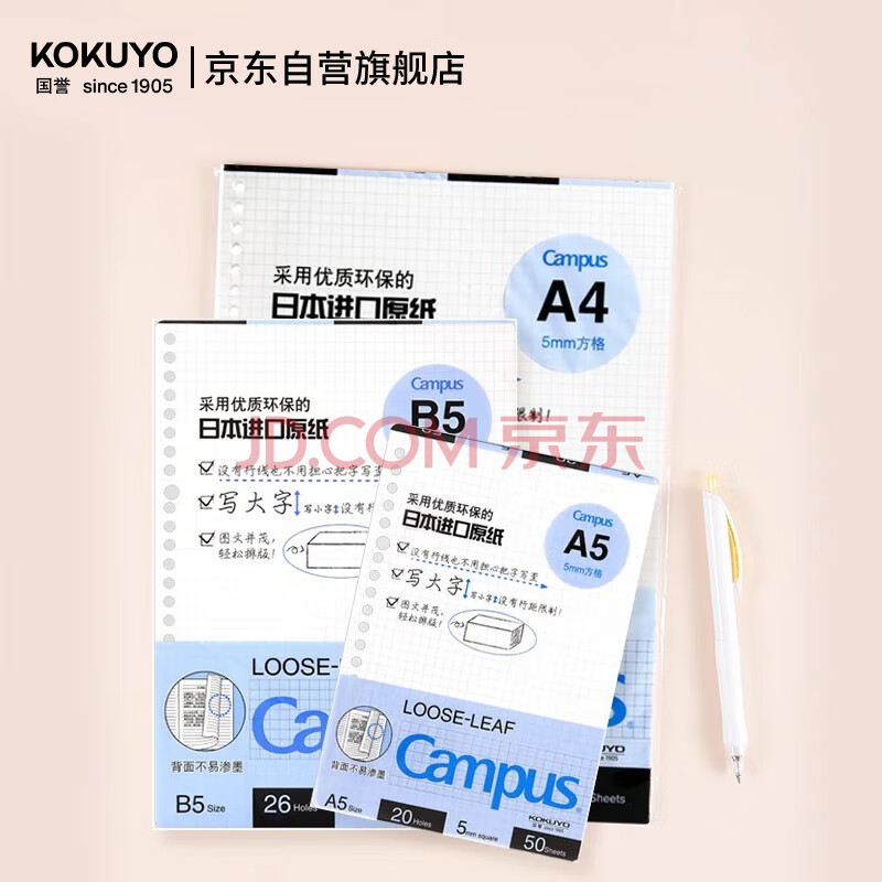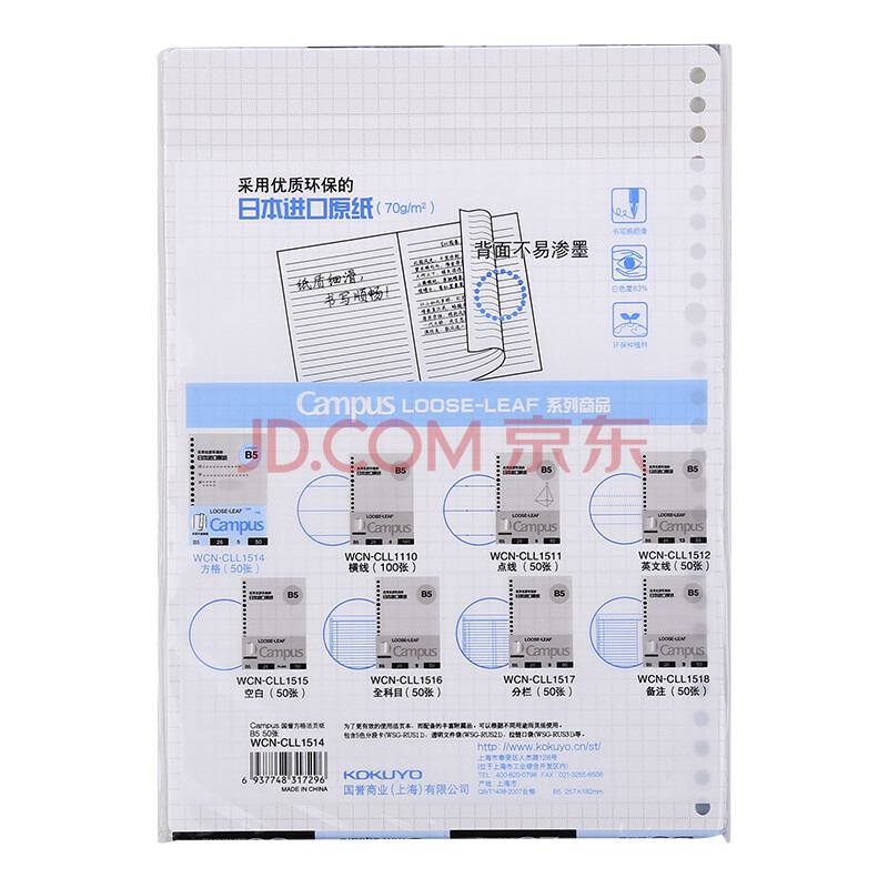 商品相册:国誉(KOKUYO)B5活页纸Campus活页本替芯笔记本子活页纸内页 5mm方格 50张/本 4本 WCN-CLL1514N第