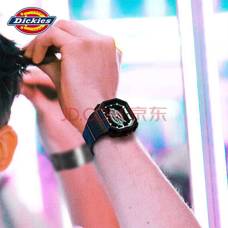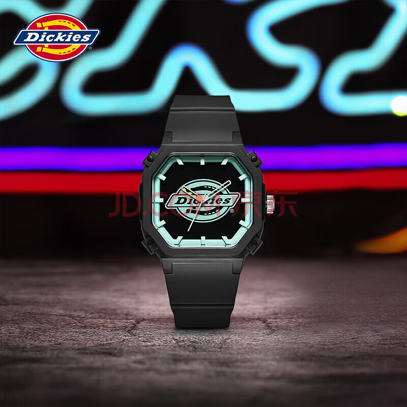 商品相册:Dickies手表女学生潮酷情侣运动方表石英表黑绿色女生日礼物318P1-13SY第