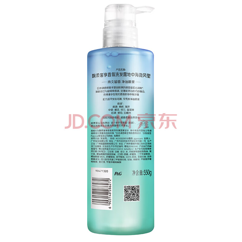 商品相册:飘柔香氛洗发水男士女士小香瓶奢享(地中海微风)550g柔顺洗发露第