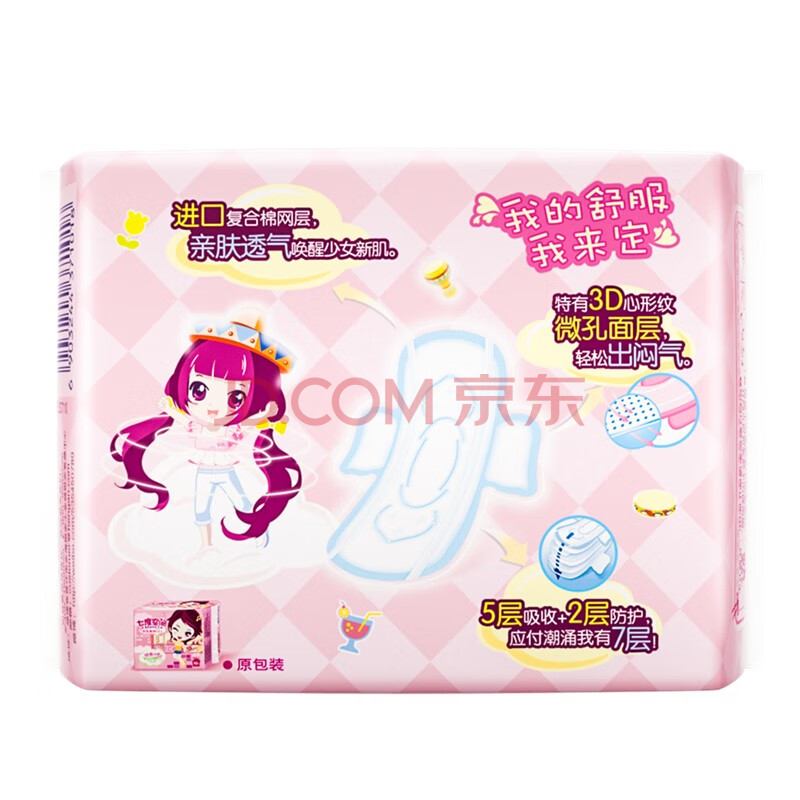 商品相册:七度空间少女系列绢爽超薄卫生巾245mm10片*5包+纯棉超薄275mm10片*5包第