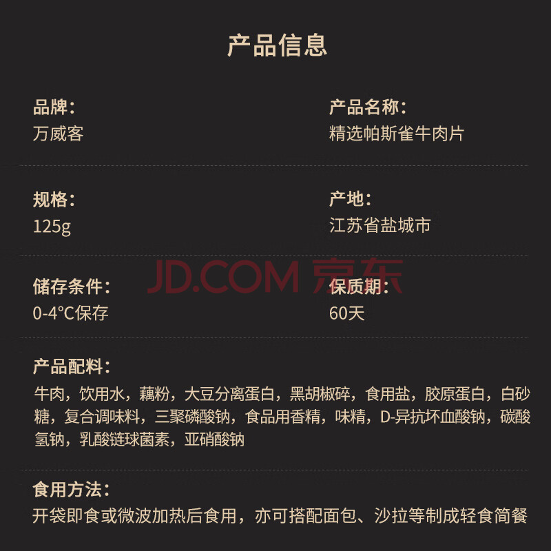 商品相册:万威客 帕斯雀牛肉片(黑椒)125g 整切草饲牛肉火腿片午餐肉零食早餐熟食第