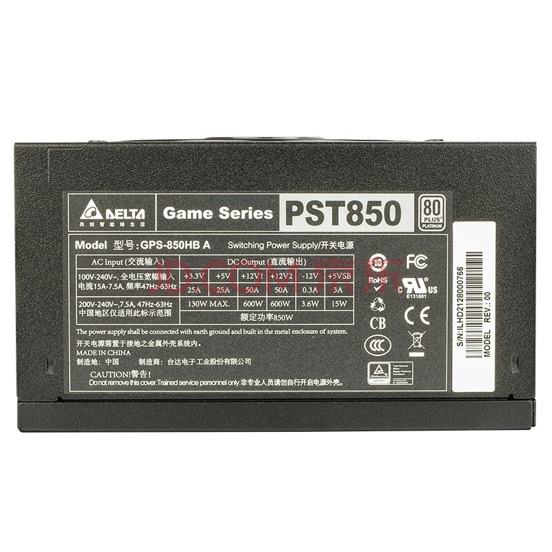 商品相册:台达(DELTA)额定850W PST白金850电脑电源 (80PLUS白金牌/支持背线/主动式PFC)第