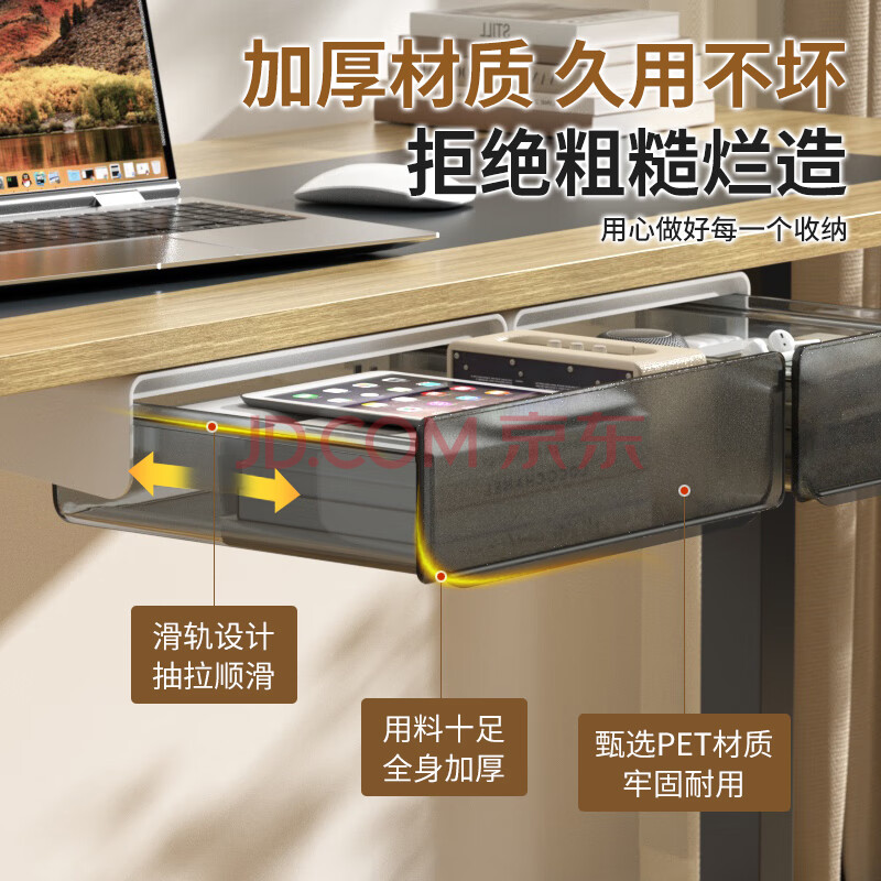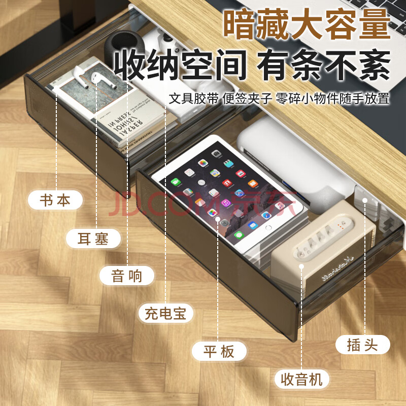 商品相册:金隆兴桌底隐形抽屉式桌下收纳办公桌面文具整理盒学生书笔筒储物盒第