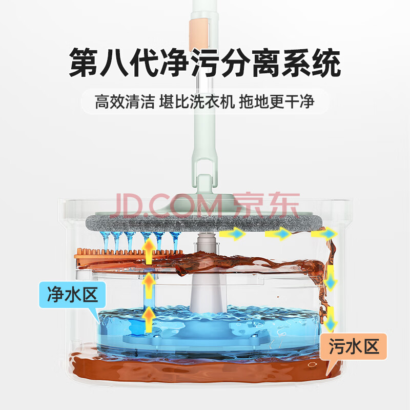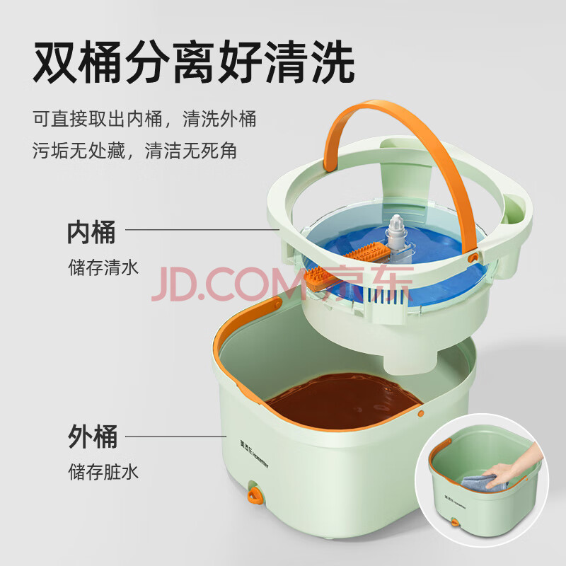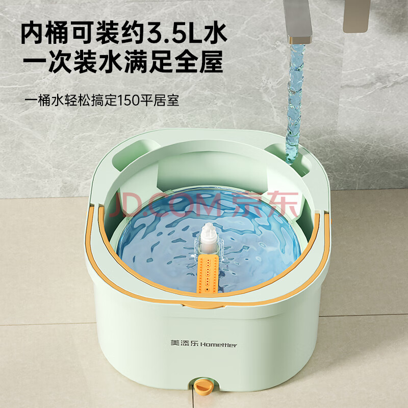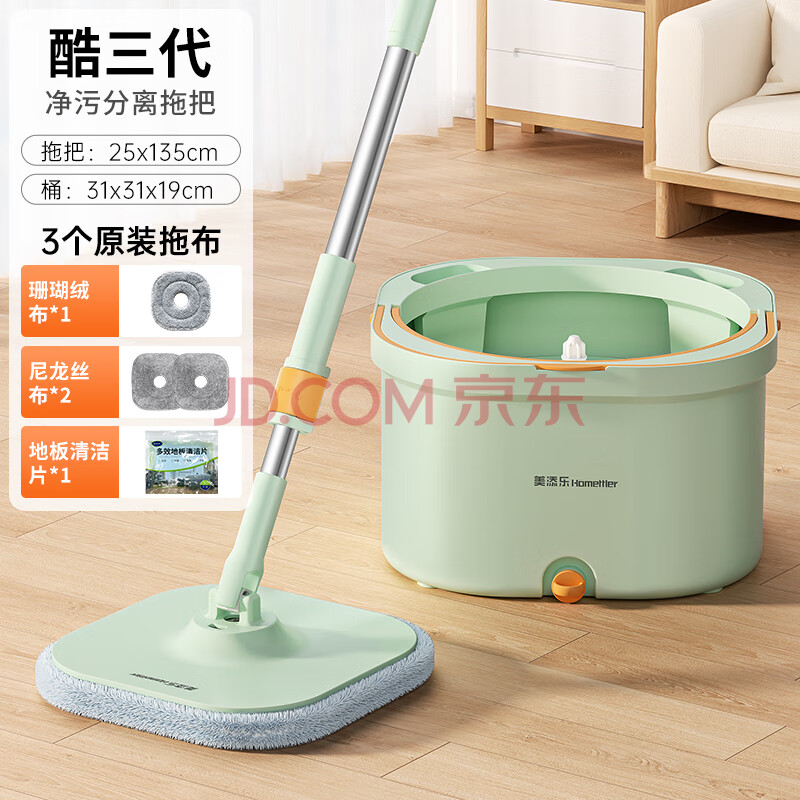 商品相册:美添乐(HoMettler)净污分离旋转拖把家用一拖净2026免手洗平板拖把3拖布带桶一套第