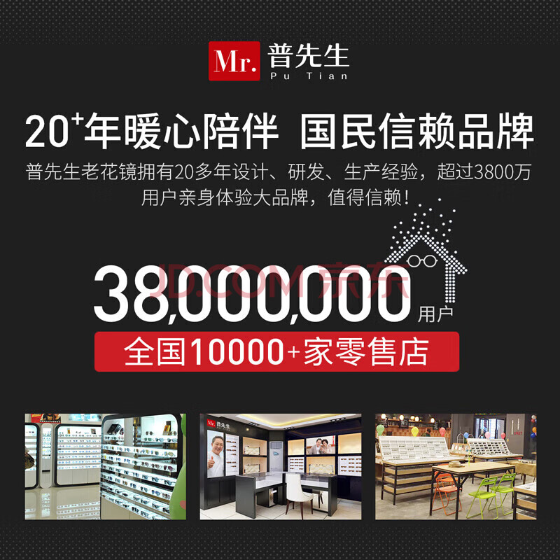 商品相册:普先生防蓝光老花镜男女通用老花眼镜高清舒适老人眼镜150度(50岁-54岁)第