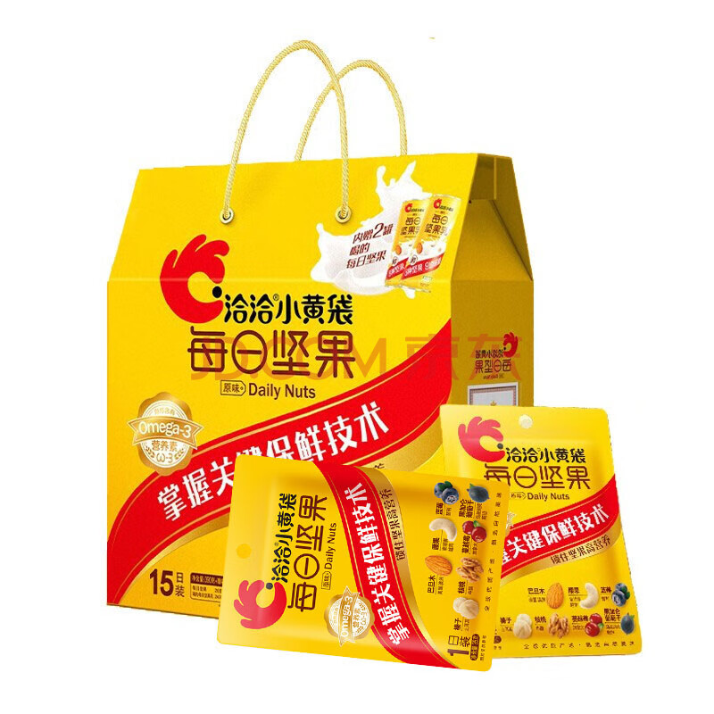 商品相册:洽洽 390g每日坚果屋顶装(15入装加赠2罐坚果乳)第