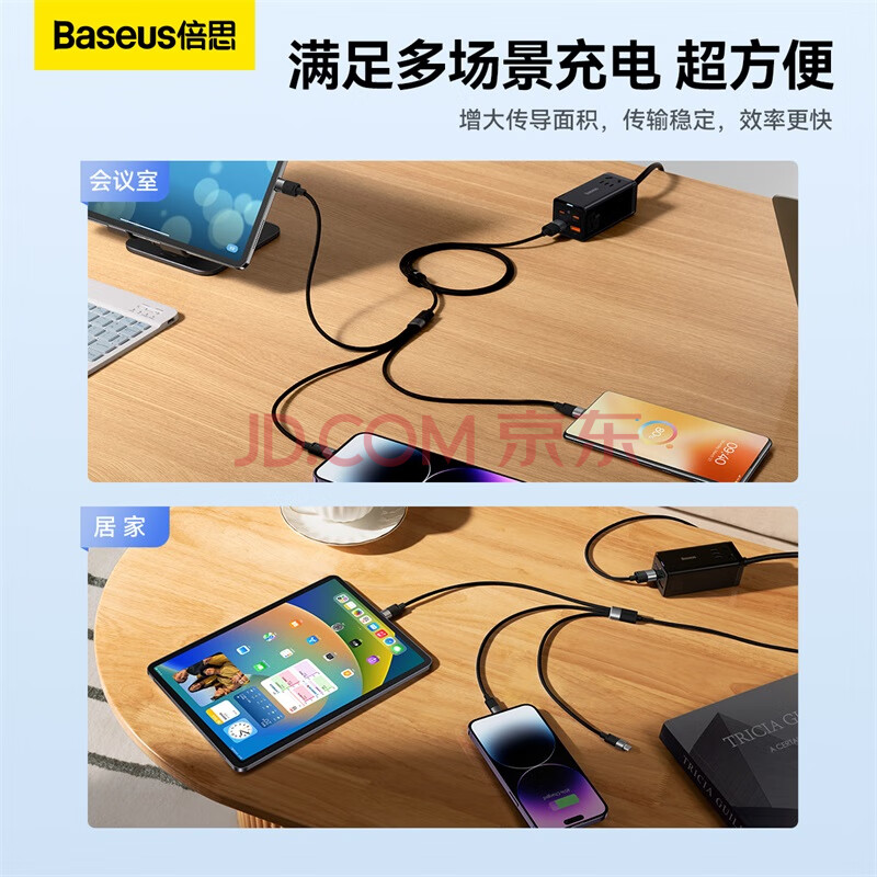 商品相册:倍思 数据线三合一苹果Type-c安卓充电线一拖三 适用iPhone17/16/15/14/13小米华为手机车载 1.2米黑第