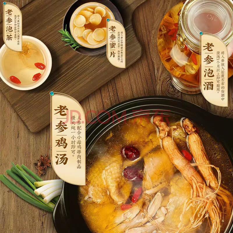 商品相册:仙草至尊 长白山人参8克/根 单根盒装 吉林长白山生晒参白参泡酒煲汤第