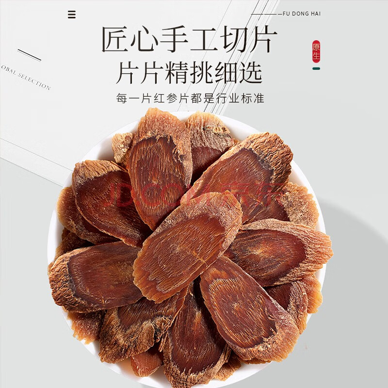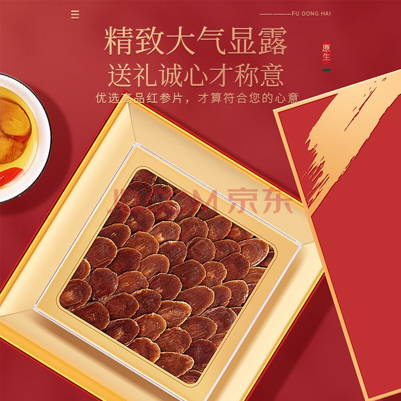 商品相册:福东海 红参片礼盒220g (精选大片约4cm) 长白山人参片礼品送长辈滋补第
