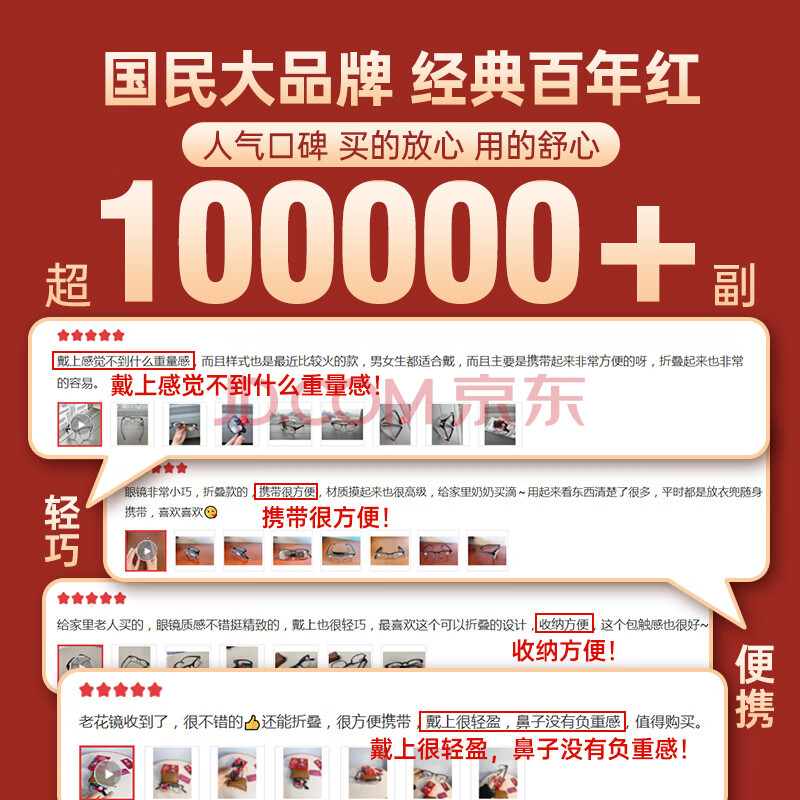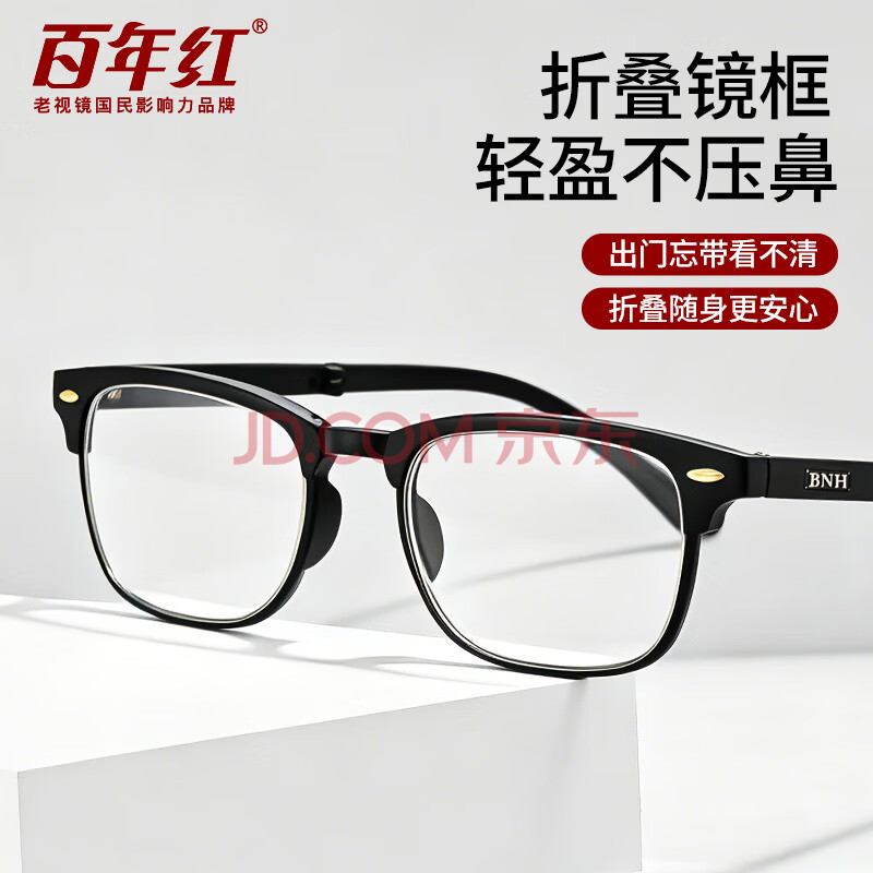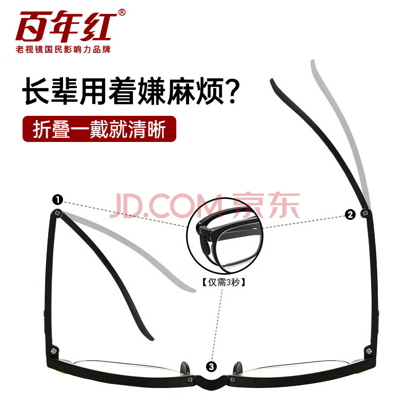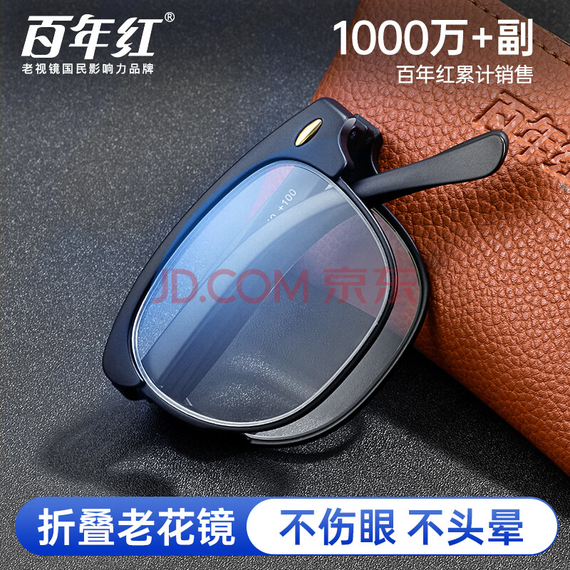 商品相册:百年红(BAINIANHONG)折叠老花镜男士进口花镜高清防蓝光正品老人护目眼镜2020-100第