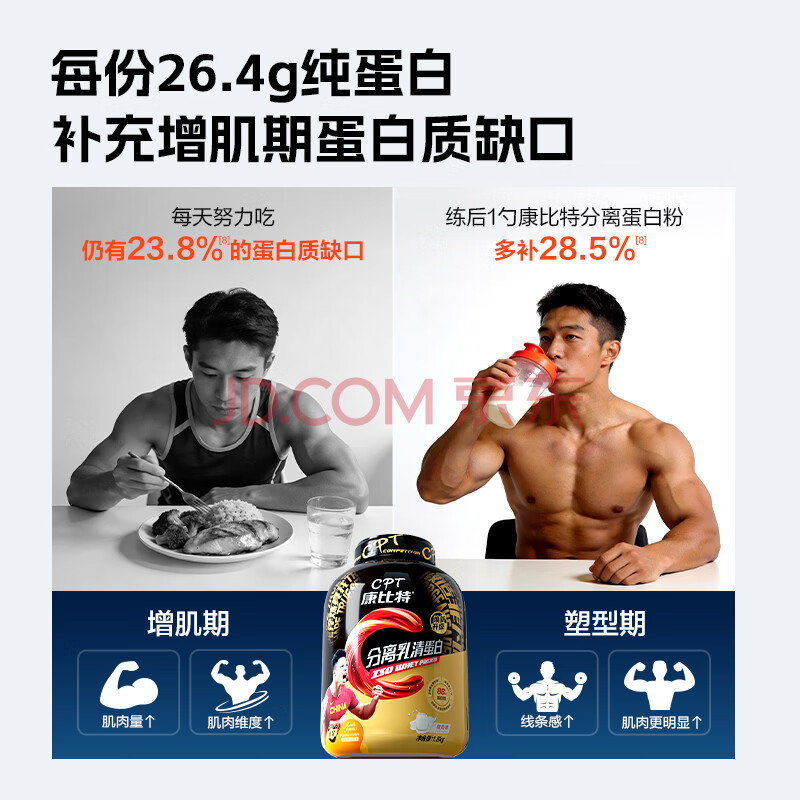 商品相册:康比特分离乳清蛋白粉增肌粉高蛋白低脂健身人士蛋白粉1800g青提绿茶味第