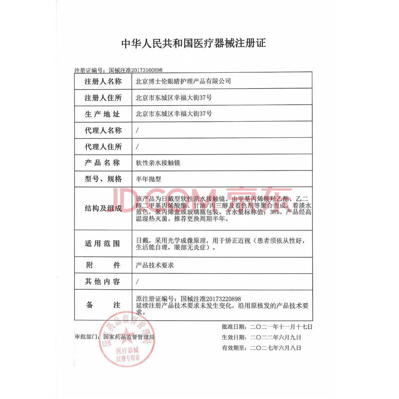 商品相册:博士伦air薄巧透明隐形半年抛型2片装500度软性亲水接触镜第