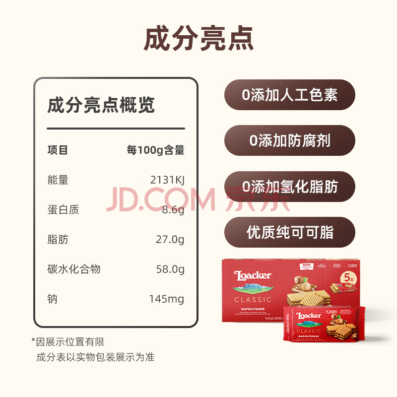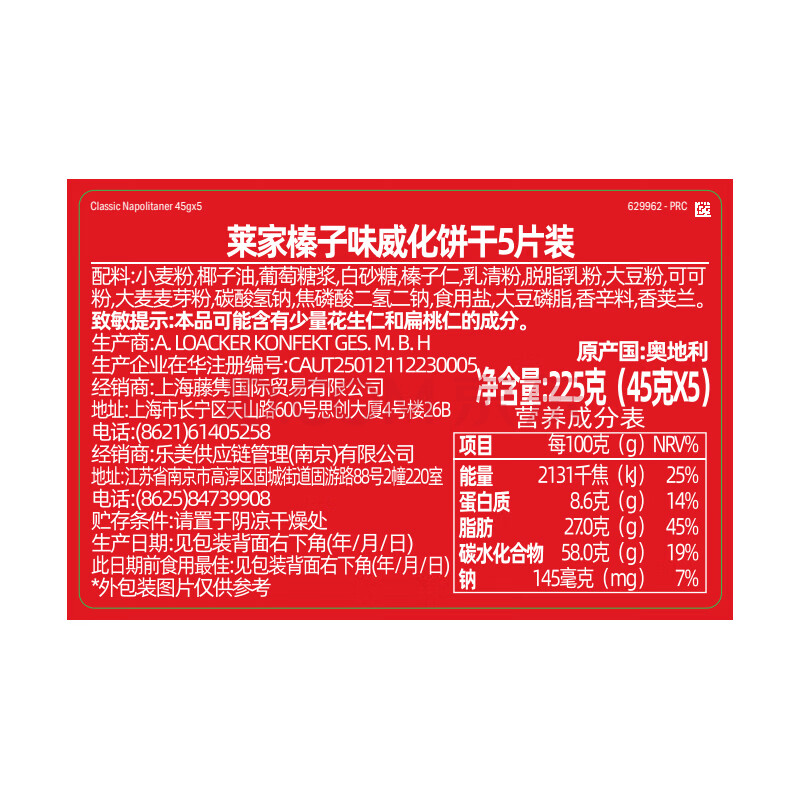商品相册:莱家loacker榛子味威化饼干225gx1盒进口休闲健康早餐膨化零食超市第1张/共6