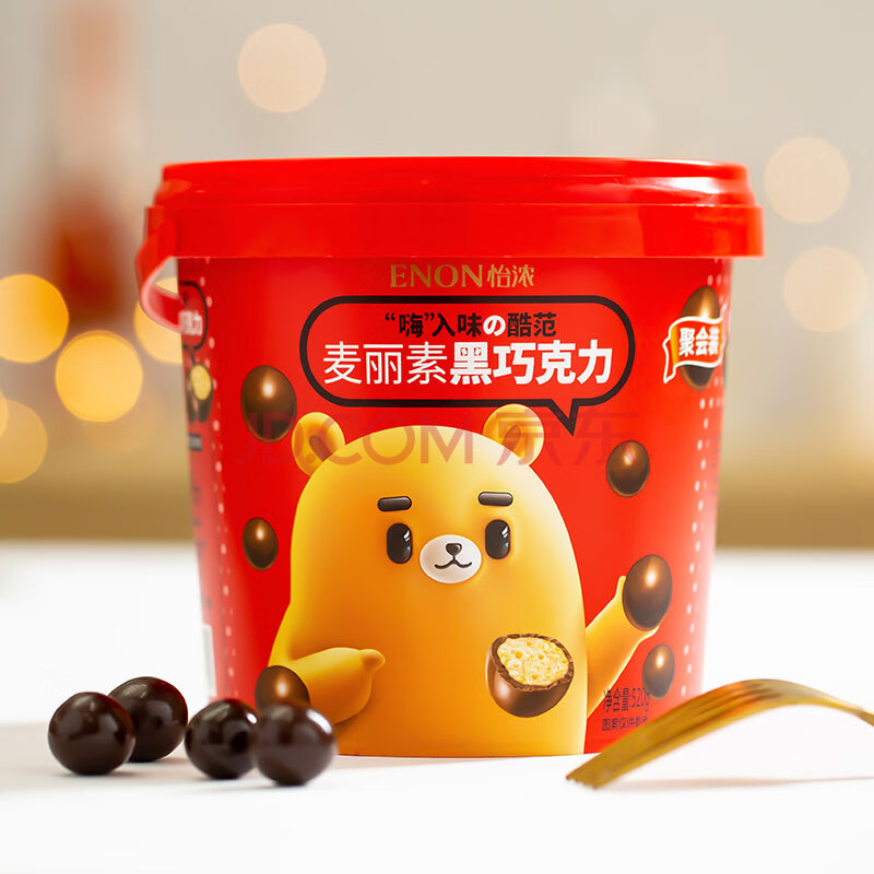 商品相册:怡浓纯可可脂麦丽素 520g 黑巧克力豆 整桶装麦芽脆米糖果生日礼物第