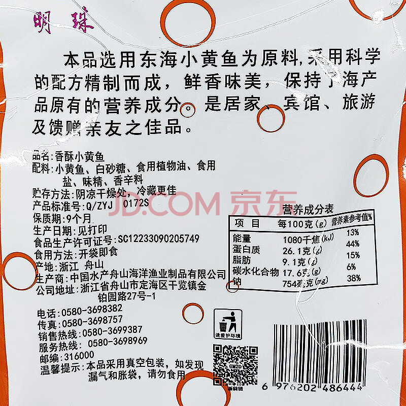 商品相册:明珠 香酥小黄鱼125g*3 中华老字号 浙江舟山特产即食海味鲜零食第