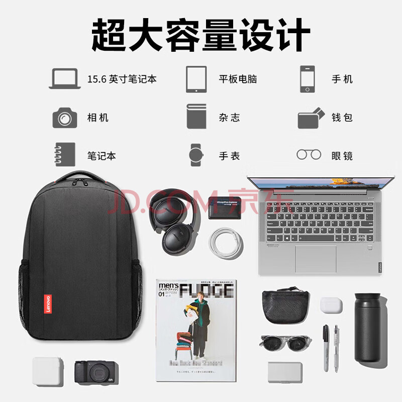 商品相册:联想(Lenovo)双肩包高颜值初高中大学生书包旅行背包出差电脑包潮男女运动旅行通勤黑色20L【升级面料】第