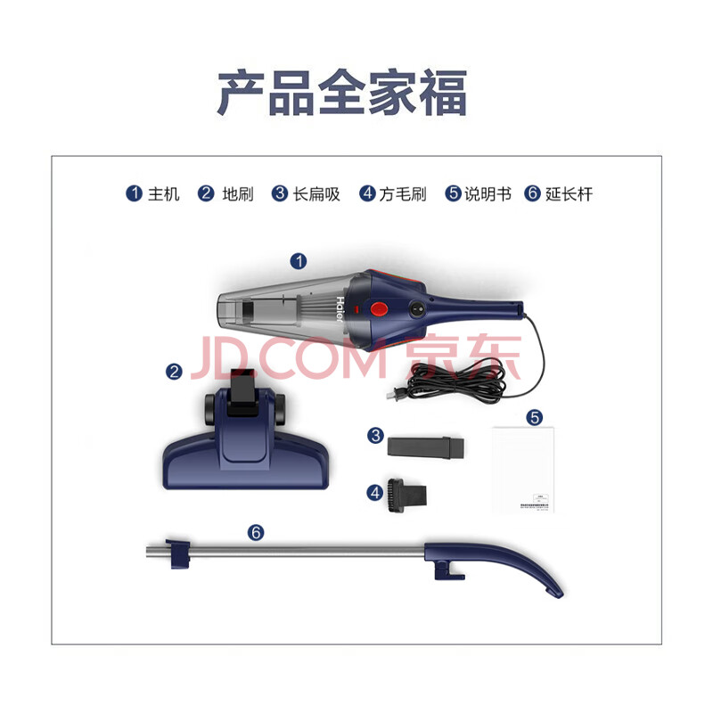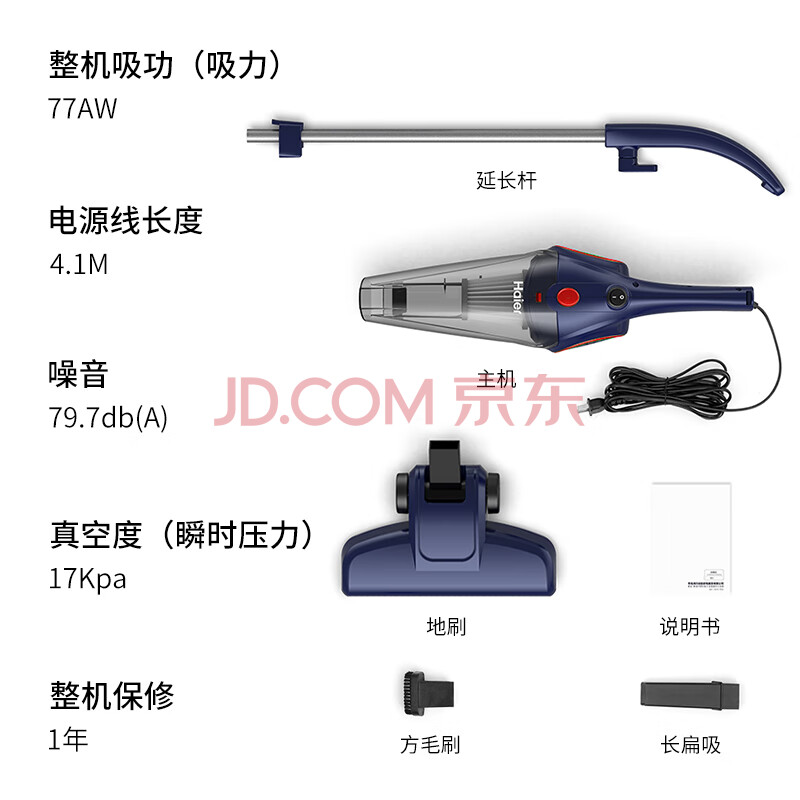 商品相册:海尔(Haier)吸尘器家用手持推杆立式有线吸尘器 二合一强劲大吸力大功率宠物猫毛发清洁除尘机ZL605G 甄选好礼第1张/共6