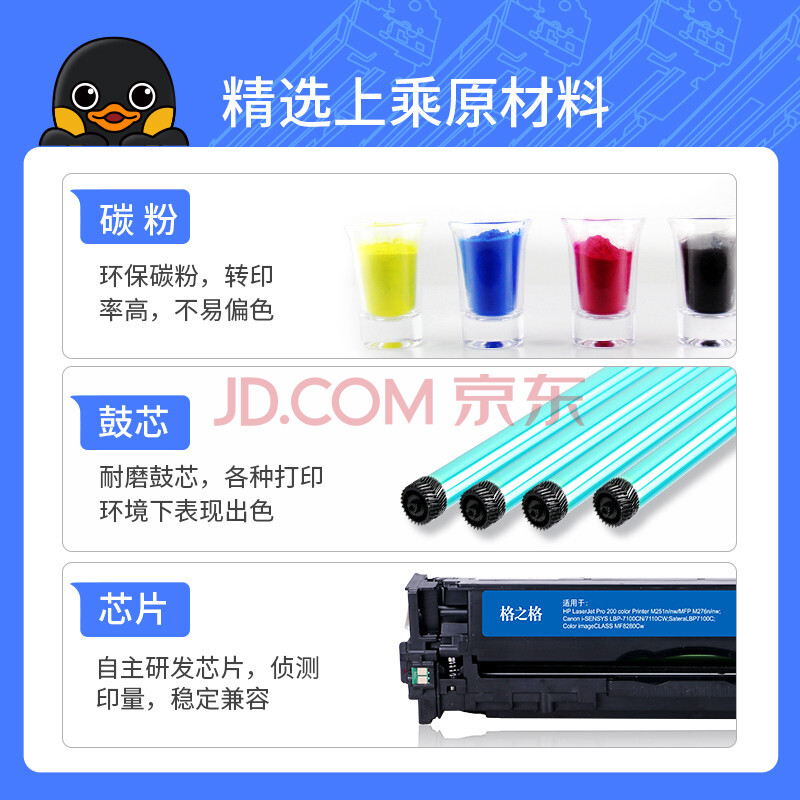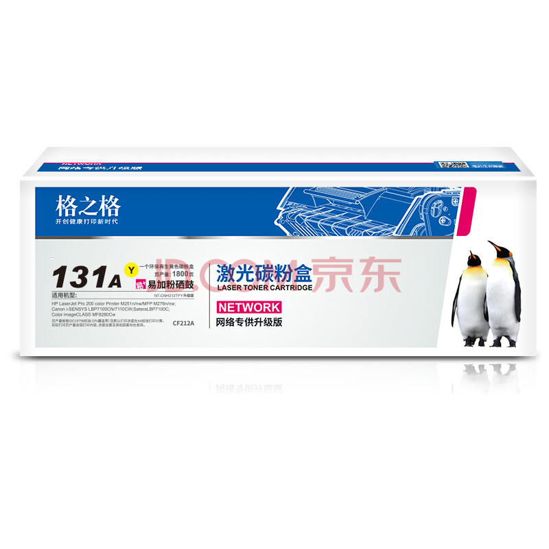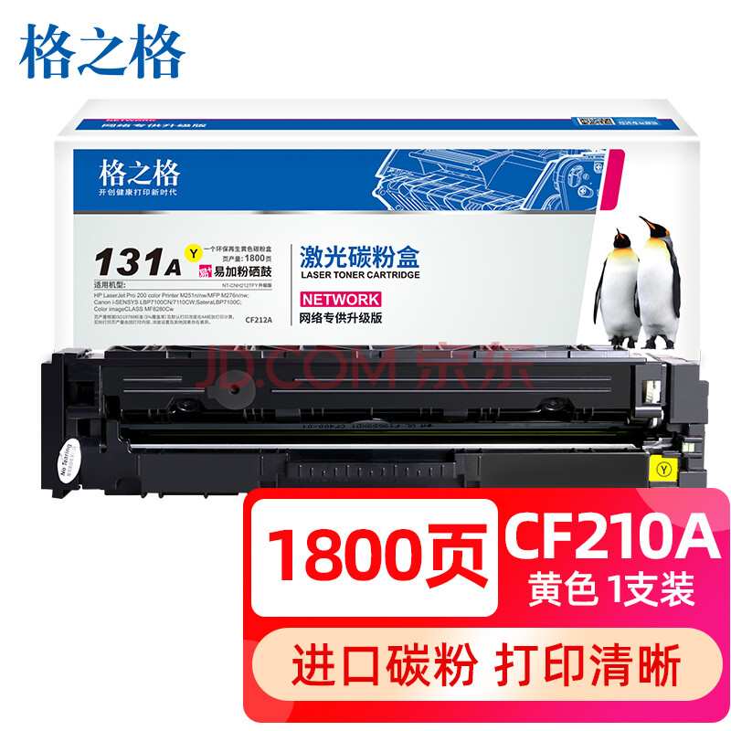 商品相册:格之格CF212A黄色硒鼓适用惠普M251n M276n M276nw 佳能LBP7110Cw LBP7100Cn MF628Cw 等黄色粉盒第