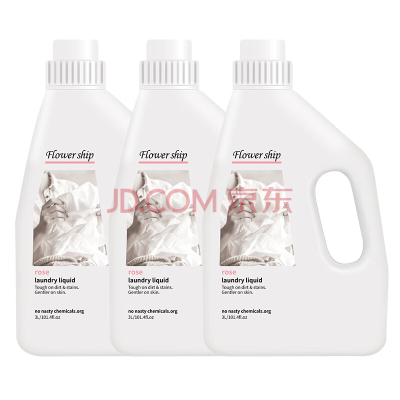 商品相册:花卉诗(Flower ship)玫瑰植物香氛洗衣液18斤(3kg*3瓶)持久留香深层去渍低泡易漂洗第