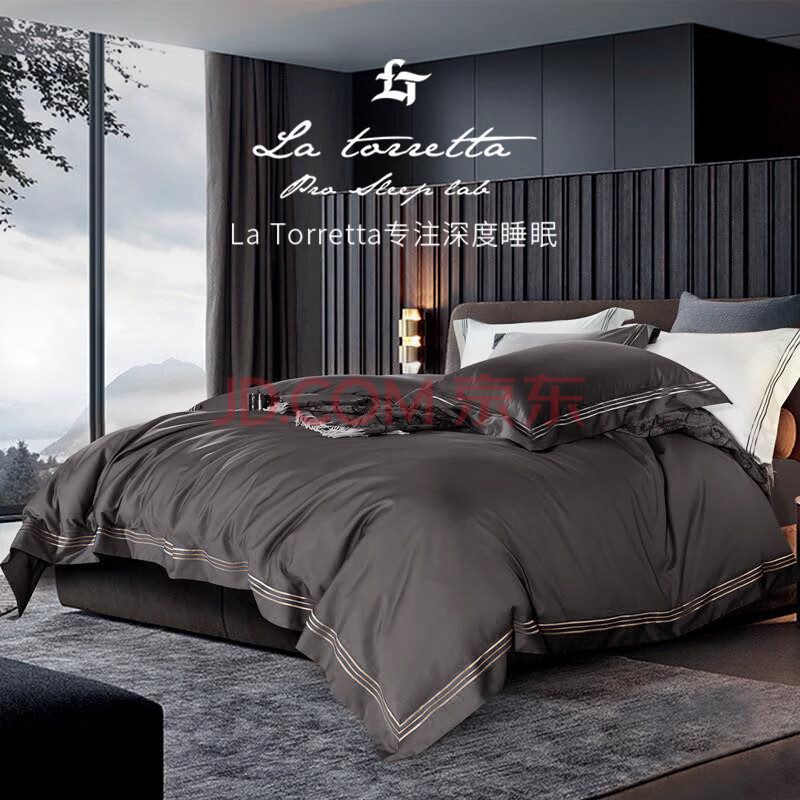 商品相册:La Torretta120支长绒棉四件套纯棉 四季高档床上全棉被套床单 灰1.8/1.5米床第