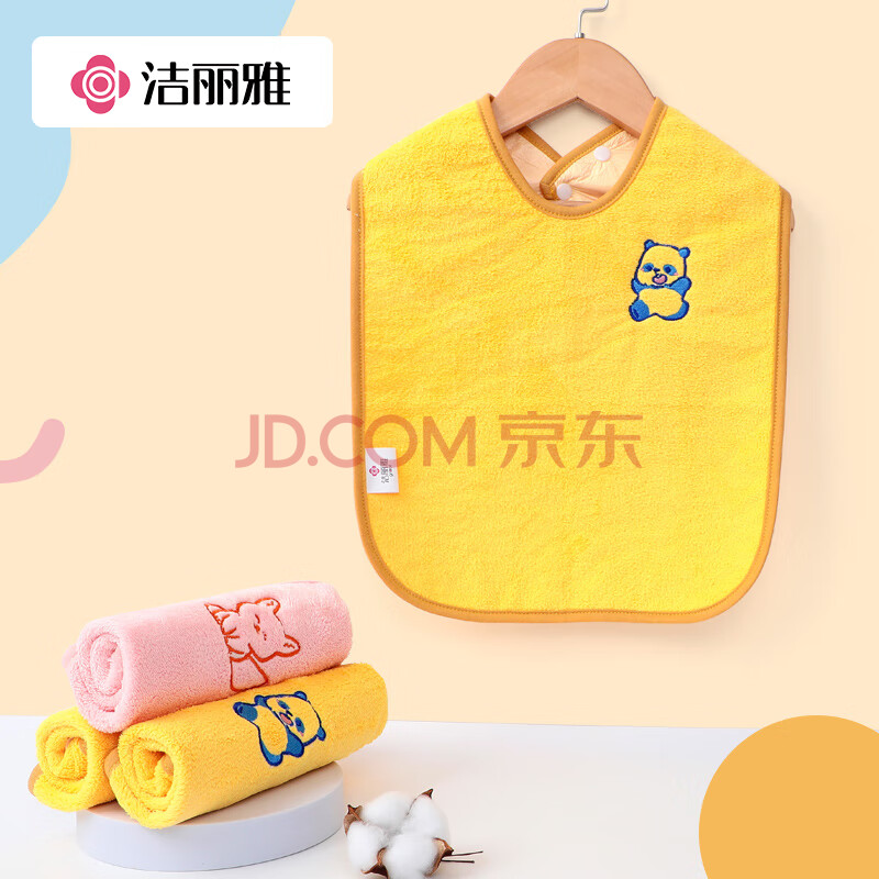 商品相册:洁丽雅儿童洗漱巾2条装 防水内衬刷牙洗脸吃饭可调节宝宝卡通围兜口水巾第1张/共7