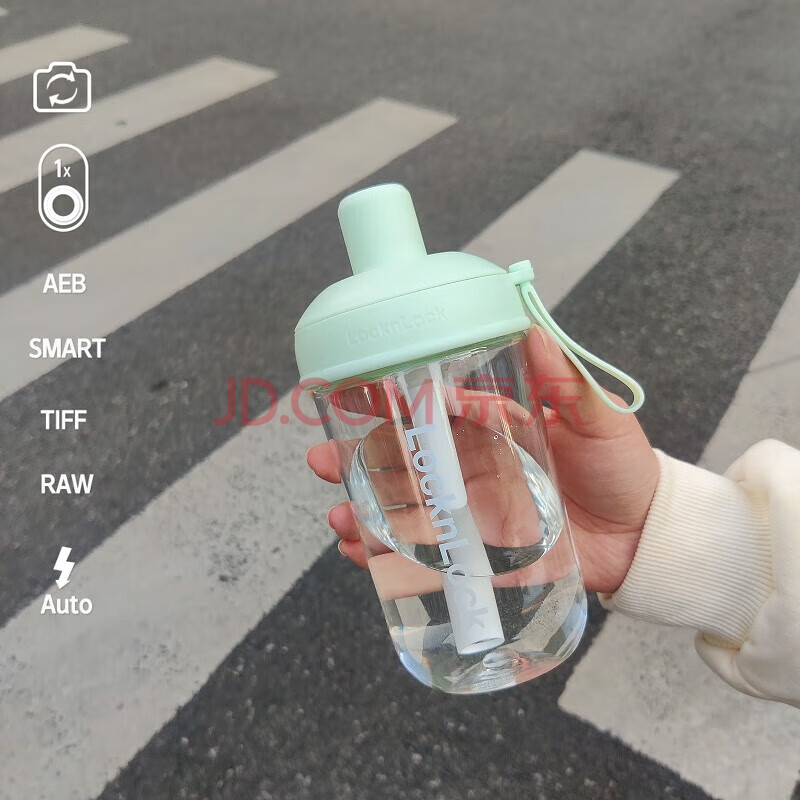 商品相册:乐扣乐扣(LOCK&LOCK)夏天塑料水杯奶茶杯Tritan带吸管户外便携提手男女杯子700mL绿色第