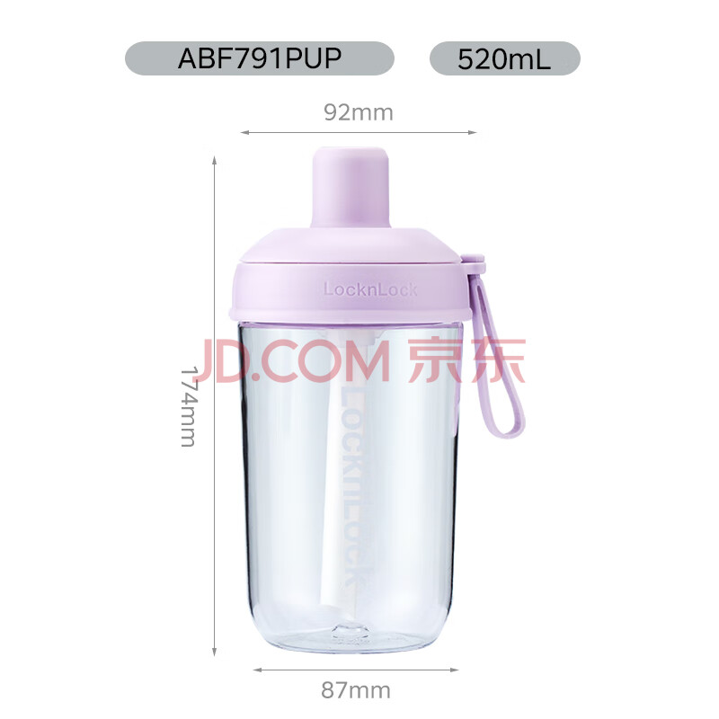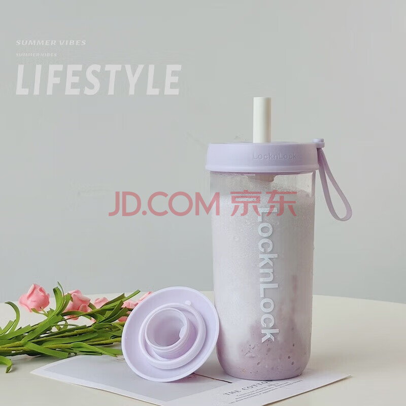 商品相册:乐扣乐扣(LOCK&LOCK)夏天塑料水杯奶茶杯Tritan带吸管户外便携提手男女杯子520mL紫色第