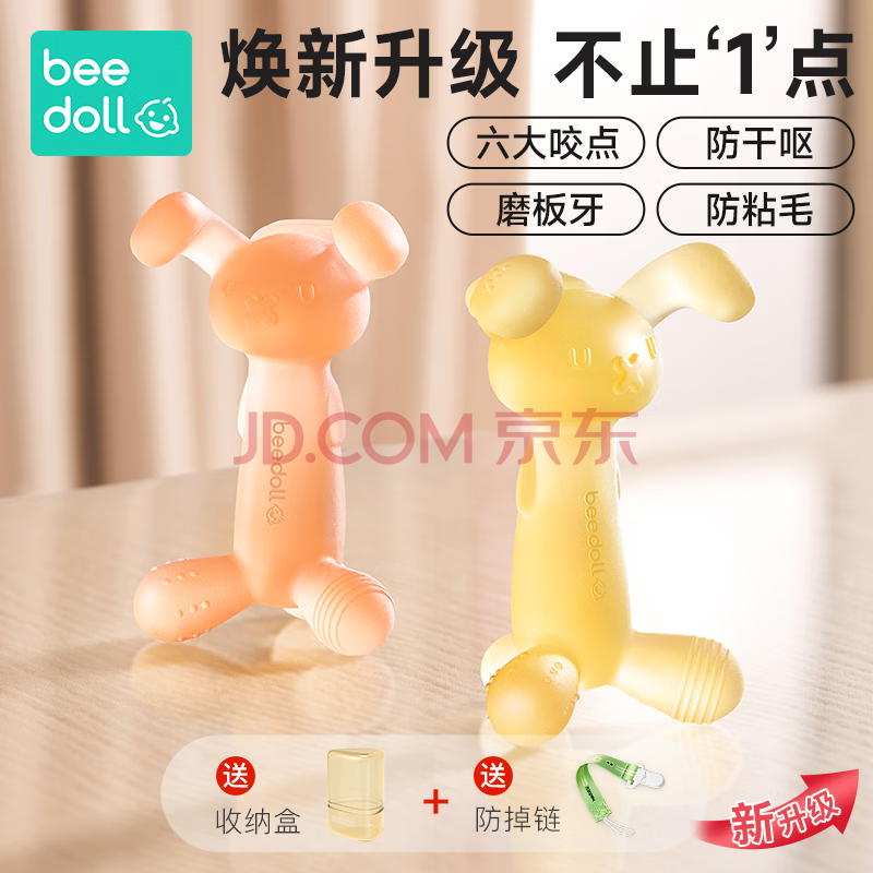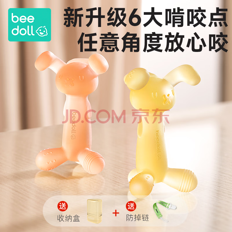 商品相册:beedoll蓓兜婴儿牙胶磨牙棒口欲期兔兔牙胶咬咬乐玩具硅胶4月龄+焕新粉第