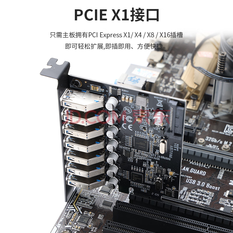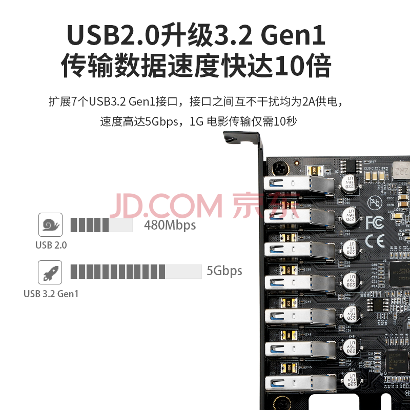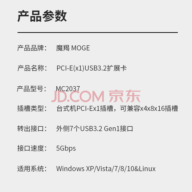 商品相册:魔羯MOGE 台式机USB3.2 Gen1扩展卡电脑内置PCIE转七口USB3.0转接卡 MC2037 第