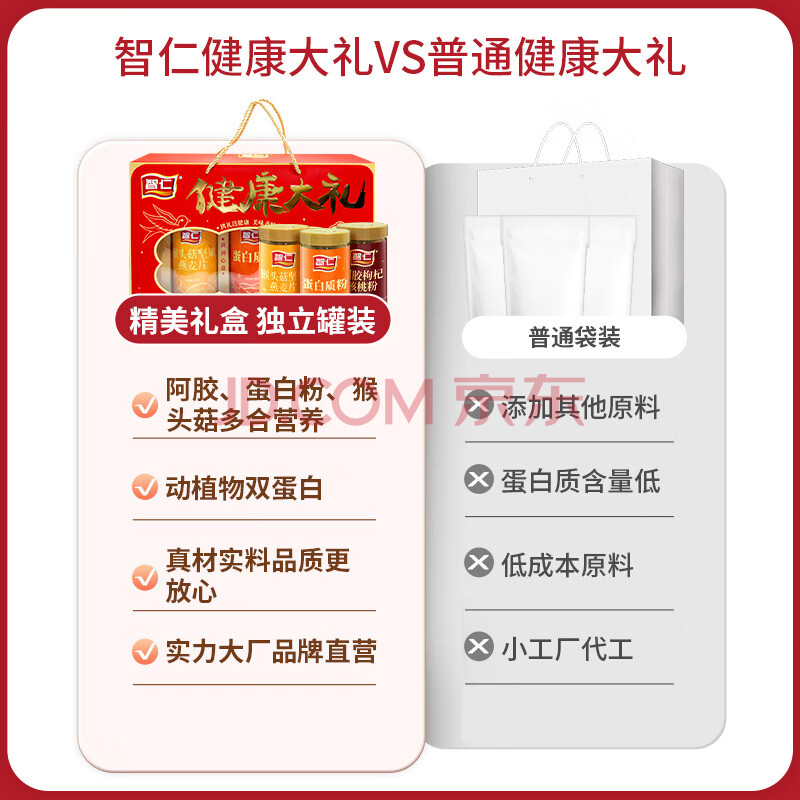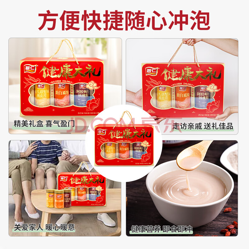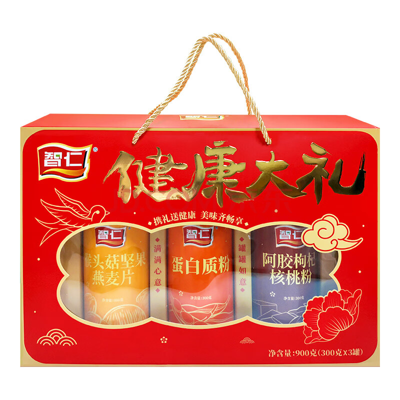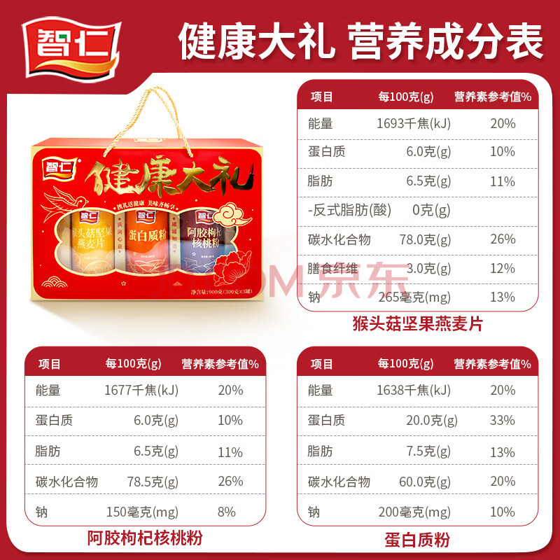 商品相册:智仁 健康大礼 猴头茹坚果燕麦片阿胶枸杞核桃粉蛋白质粉节日礼盒900g第