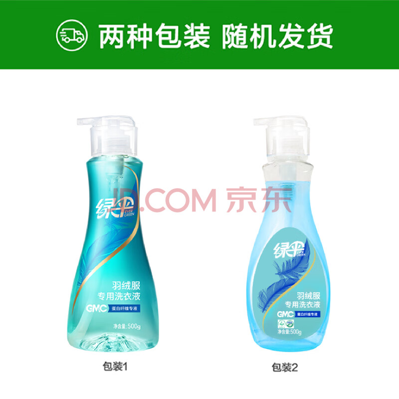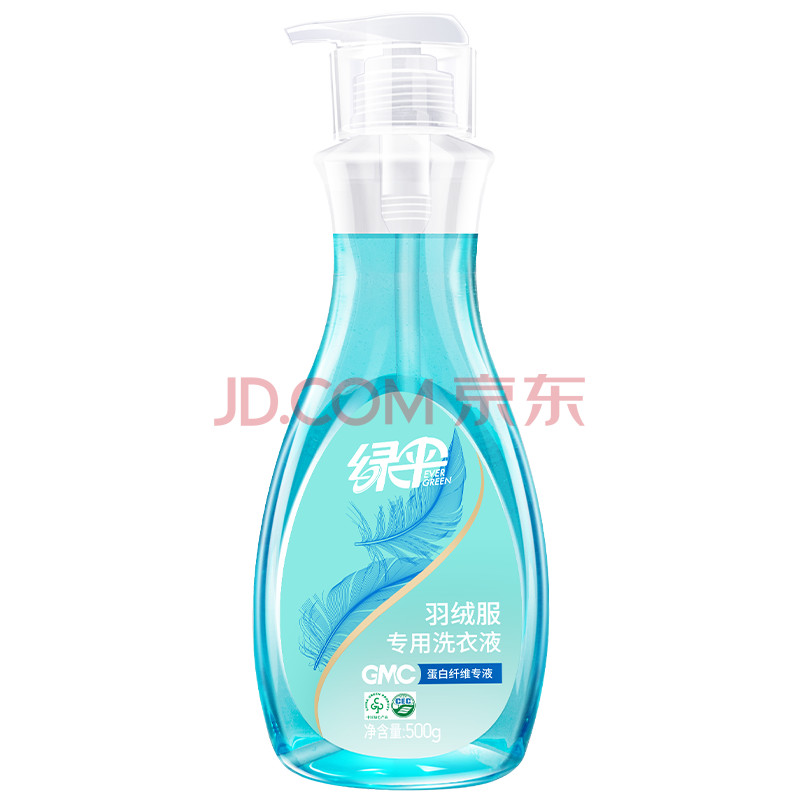 商品相册:绿伞GMC蛋白纤维专液羽绒服专用洗衣液500g蓬松洗涤剂去污清洁剂易漂第