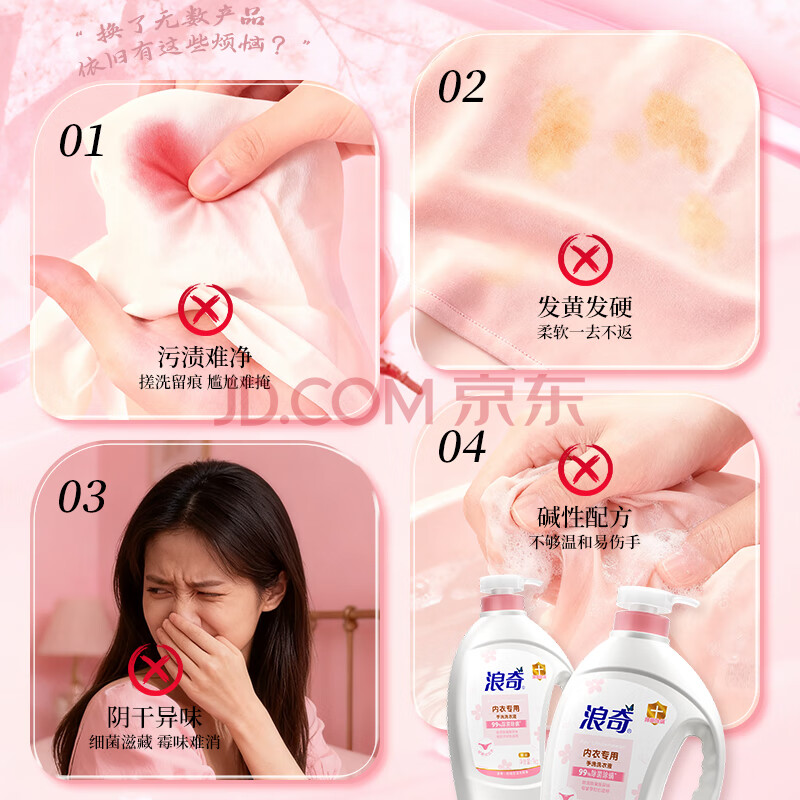 商品相册:浪奇内衣洗衣液樱花香1kg男女通用生理期去血渍高效除菌除螨 热销商品第1张/共8