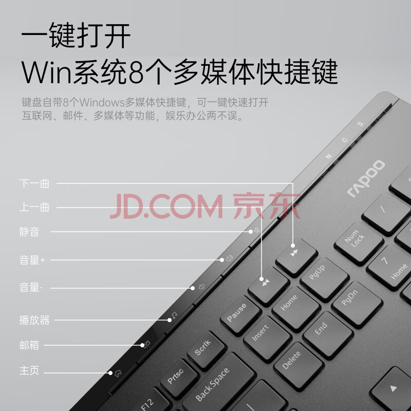 商品相册:雷柏(Rapoo)8100GT升级款 113键无线/蓝牙多模键盘鼠标套装 全尺寸多媒体按键笔记本电脑台式机键鼠套装 黑色第
