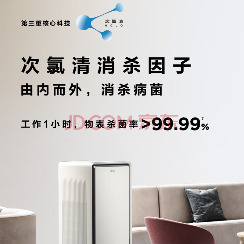 商品相册:美的(Midea)美的净击者空气净化消毒机 空气净化+空气消毒二合一 M/KXJ-Y-800-P-001第