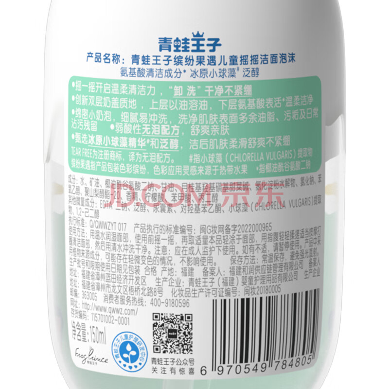 商品相册:青蛙王子(FROGPRINCE)儿童洗面奶 儿童洁面泡沫洁面乳 缤纷果遇 摇摇洁面泡沫150ml第