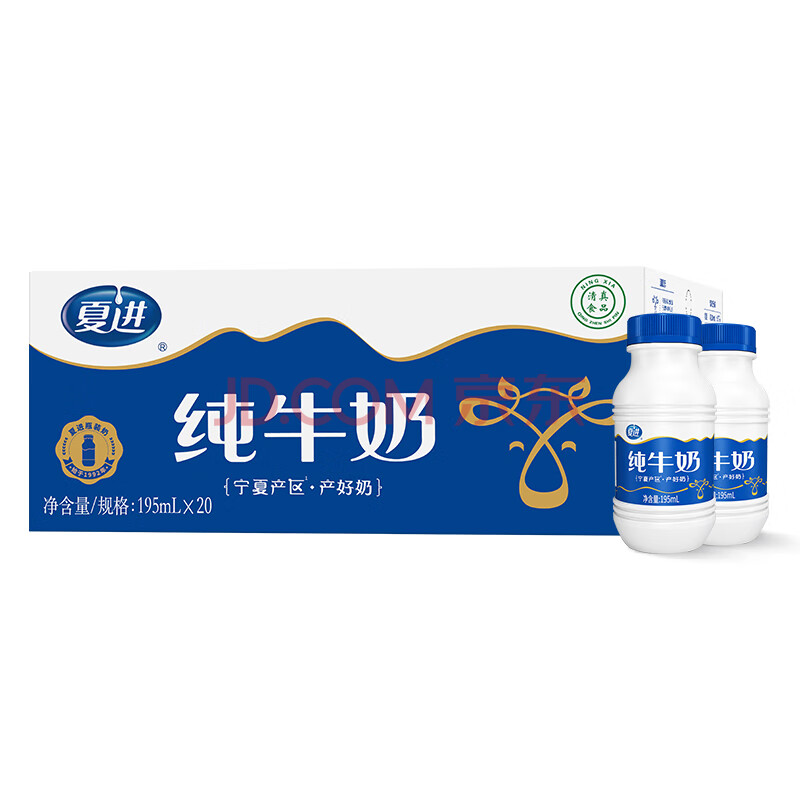 商品相册:夏进纯牛奶 195ml*20瓶宁夏塞上牧场奶源瓶装牛奶送礼整箱第