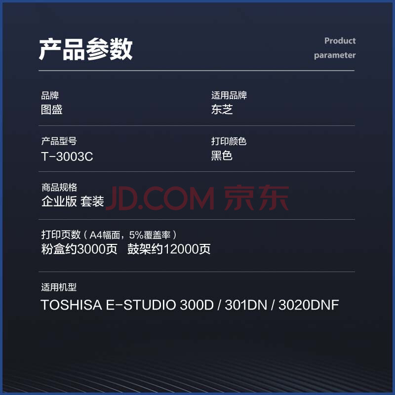 商品相册:图盛适用东芝300D套装T-3003C打印机粉盒Toshiba 301DN墨粉盒DP3003碳粉盒302DNF复印机墨盒碳粉墨粉鼓架晒鼓第