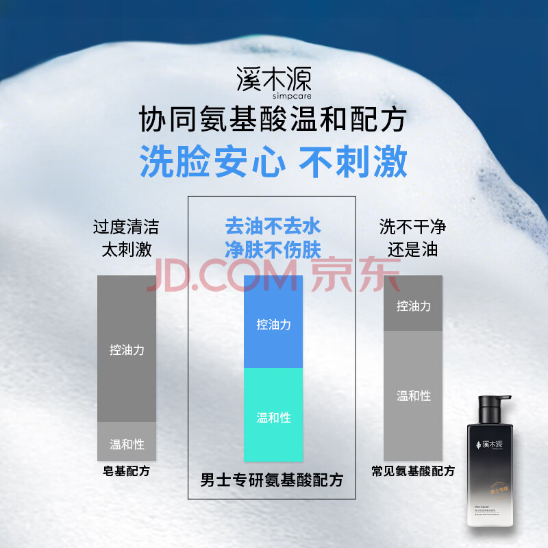 商品相册:溪木源洗面奶男士专用青少年控油洁面乳氨基酸温和清洁护肤品2瓶第