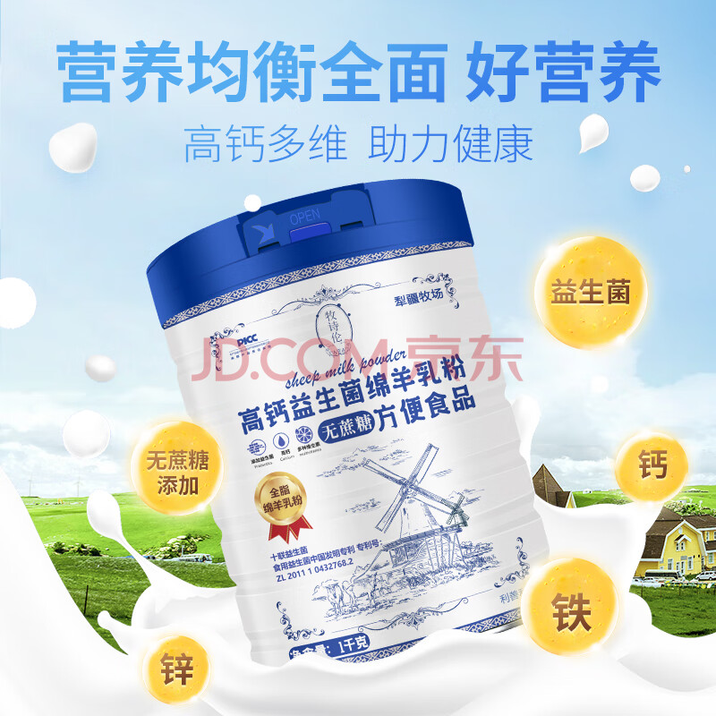 商品相册:牧诗伦无蔗糖添加绵羊奶粉成人中老年营养品益生菌多维高钙粉1000g大罐第