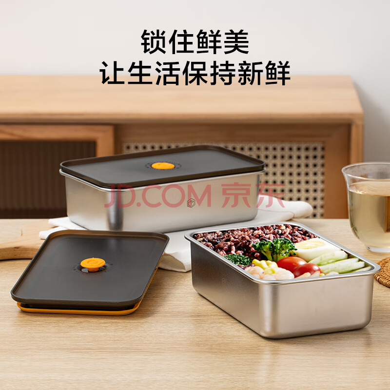 商品相册:京东京造不锈钢保鲜盒 密封冰箱厨房储存收纳盒 水果零食带饭餐盒1.2L*1个第