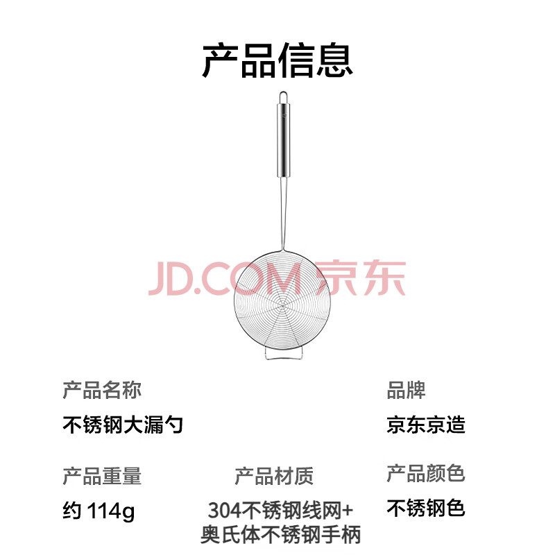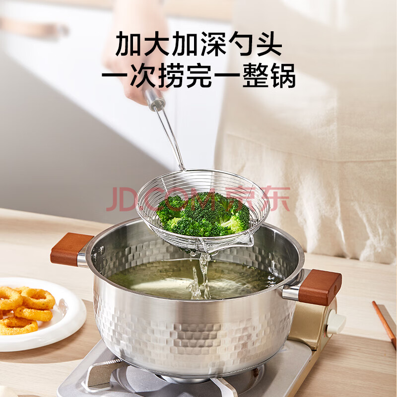 商品相册:京东京造大漏勺 大号不锈钢笊篱线捞家用捞面捞饺厨房商用炸锅过滤网筛*1第