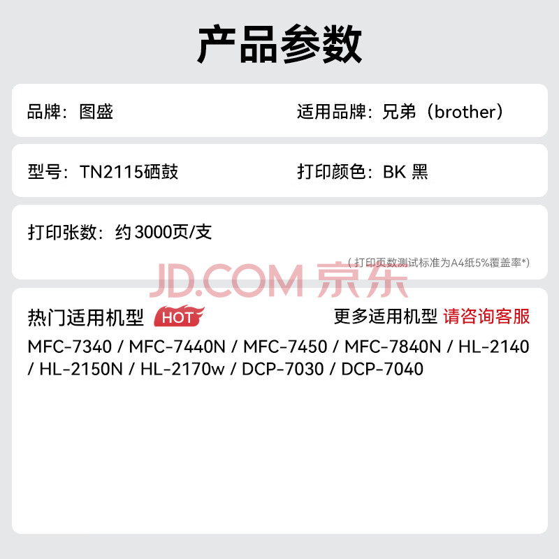 商品相册:图盛TN2115粉盒适用兄弟HL2140硒鼓 兄弟HL2150N DCP7030 MFC7450 MFC7340打印机硒鼓墨盒TN360 TN-2125墨粉盒第