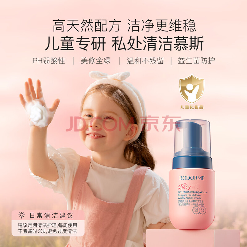 商品相册:贝德美(bodcrme)儿童柔护慕斯清洁液私密私处护理液宝宝清洗液外阴屁屁洗护100ml第