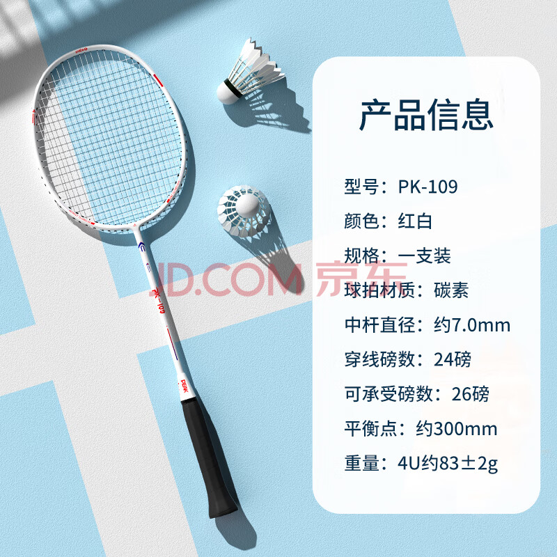 商品相册:匹克碳素羽毛球拍4U成人学生专业超轻耐打单拍PK-106黑色含手胶第