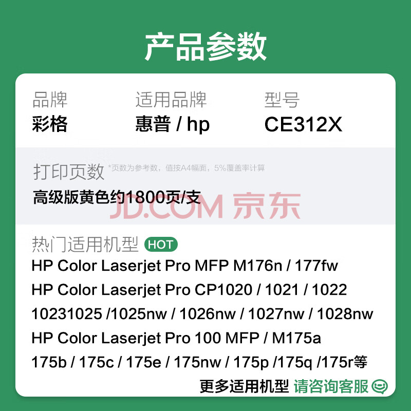 商品相册:彩格适用惠普CP1025硒鼓M176n粉盒M177fw墨盒HP126A M175nw M175a打印机CE310A/CF350A佳能LBP7010C LBP7018C第1张/共5