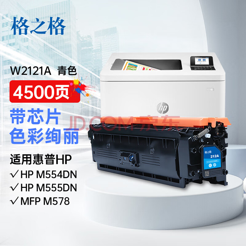 商品相册:格之格W2120A硒鼓适用惠普HP M554dn碳粉盒M555dn M555X彩色打印机墨盒MFP M578 212A/X带芯片硒鼓青色第